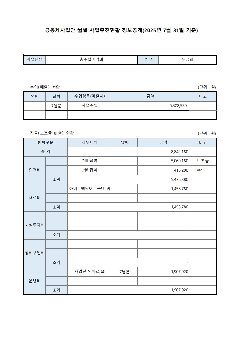 2025년 7월 공동체사업단(충주할매약과) 정보공개서