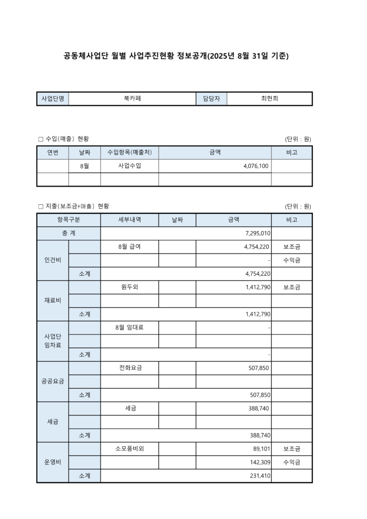 2025년 8월 공동체사업단(북카페) 정보공개서