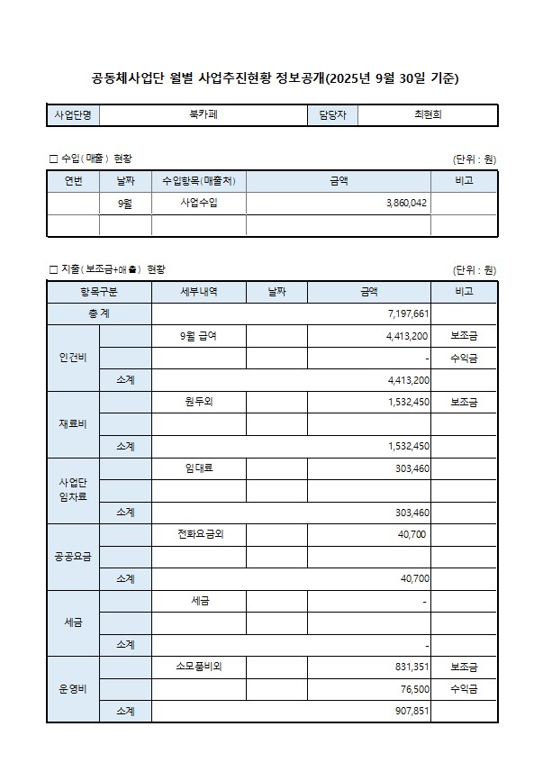 2025년 9월 공동체사업단(북카페) 정보공개서